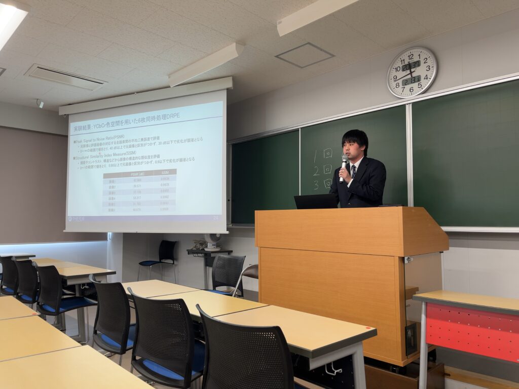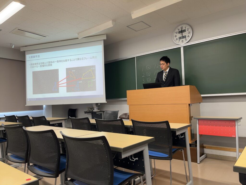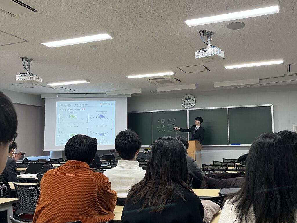 今年は2025卒の先輩方が駆けつけてさらなる大所帯での中の発表になりました。李研究室の強みの一つですかね、身内が多いと発表しやすいものです。